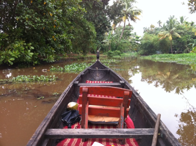 It had been heroic work: the touts at the busstation said it didn’t exist, according to the tourist office it was forbidden, but finally I was rowing on-my-own in a massive wooden canoe in the famous Kerala backwaters. The alternative had been joining a luxurious houseboat cruise or an organized tour, both are probably a lot of fun, just not for me. My persuasion tactics at the tourist office had been all over the place: my swimming skills, canoe experience on the ocean, (co) owner of two boats in canal capital Amsterdam, having lived on a houseboat for a year, even the fact that The Netherlands lies for 40% below sea level had been thrown into the pit. In the end, “ok, I’ll pay extra in order not to have somebody row me” proved to be the winning argument. Not very surprisingly, actually.